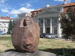 The Stanisław Staszic Memorial (Polish: Pomnik Stanisława Staszica) is a memorial in Warsaw, Poland, placed at the campus of the Warsaw University of Life Sciences, at 159 Nowoursynowska Street, in the neighbourhood of Stary Służew within the district of Ursynów. It is dedicated to Stanisław Staszic, a leading figure of the Polish Enlightenment in the 18th century, a writer, activist, geologist and geographer. The monument consists of a bust carved into a side of a large rock. It was made by sculptor Stanisław Lipski and unveiled in 1976 in front of the Primate Palace at 13/15 Senatorska Street, before being moved to its current location in 2007.