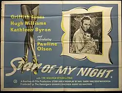 Star of My Night is a 1954 British second feature ('B')[1] romance film directed by Paul Dickson and starring Griffith Jones, Kathleen Byron and Hugh Williams.[2][3] It was written by Paul Tabori from his 1957 novel Le Soleil de ma Nuit. It concerns a sculptor who becomes romantically involved with a ballerina. Although produced as a second feature by the Danziger Brothers, it had a more established cast than many.[1]