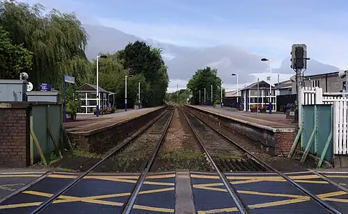 The station at one time had canopies and substantial buildings, but these have been demolished. The signal box remains in use to supervise a busy level crossing.