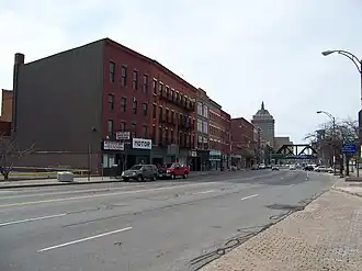 State Street Historic District is a national historic district located at Rochester in Monroe County, New York. The district consists of the last surviving continuous row of 19th-century masonry commercial buildings within Rochester's Inner Loop. They were developed between 1825 and 1900 and the row forms an unpretentious unbroken wall of 12 buildings. The oldest building is located at 141-147 State Street and was constructed about 1825.[2]