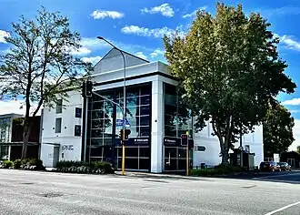 The building was sold in 2001 to Bayleys Real Estate; while the building still stands, little remains of its original appearance.[5] In late 2017 it was further modified and opened as London State Building, a three level 1,250 m2 (13,500 sq ft) commercial building, with 5 tenants and parking.[6] The gable end and moulding on the Victoria Street façade and the blind arcading on the London Street frontage remain from the 1934 building.[7]