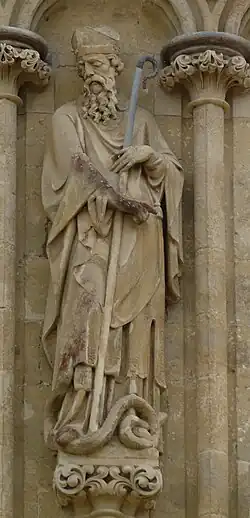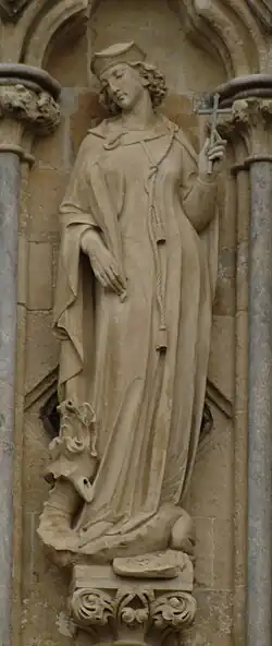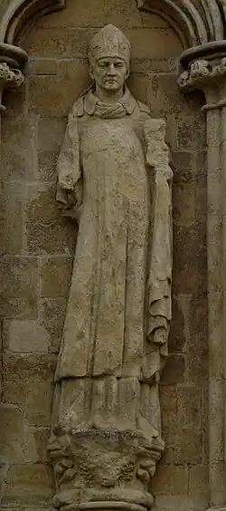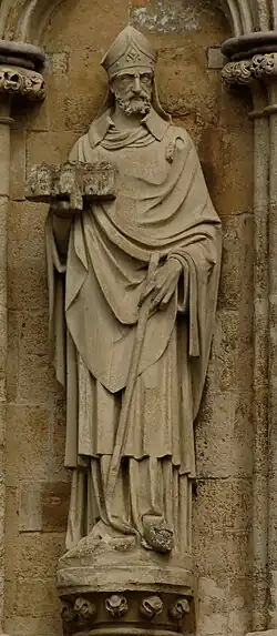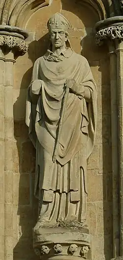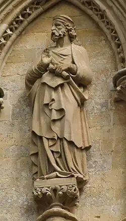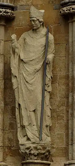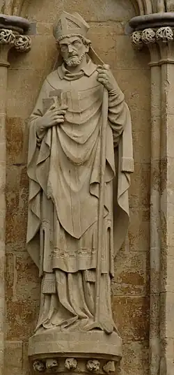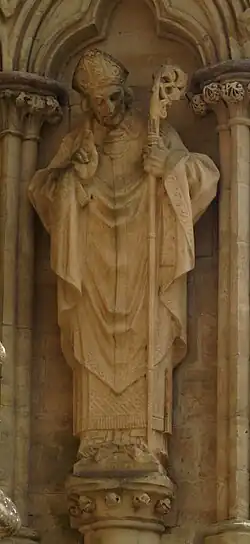 167 St Etheldreda After 1869 James Redfern On north face. Holding model church on right arm, staff in left hand.