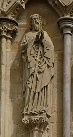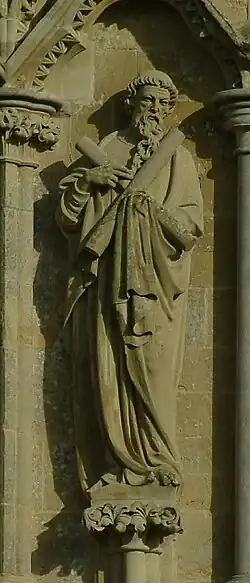 1. ^ Ayers. T., 2000 (Salisbury Cathedral: The West Front:A History and Study in Conservation.) pages 191–247. Philimore, ISBN 1860771521-1-86077-152-1.