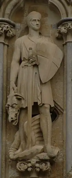 136 St George ?1868 James Redfern A shield on left elbow, sword supported by left hand, right hand holding head of dragon.