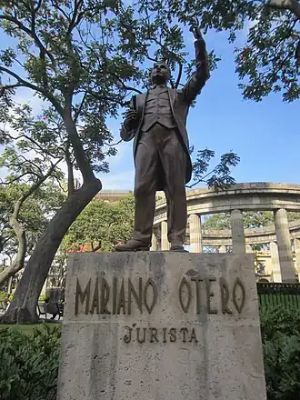 A statue of Mariano Otero is installed along the Rotonda de los Jaliscienses Ilustres, in Centro, Guadalajara, in the Mexican state of Jalisco.[1]