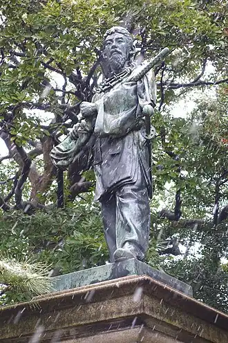 A statue of Umashimadenomikoto (可美真手命) by Akira Sano is installed in Tokyo's Hamarikyu Gardens, in Japan.