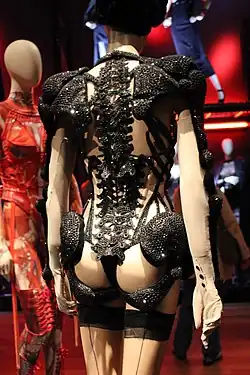 In 2010, steampunk fashion entered the high-end market of fashion as designer John Galliano brought elements from the style to his spring haute couture show for Christian Dior.[19] Another designer associated with the steampunk style is Jean Paul Gaultier, who frequently shows corsets in different material in his collections.[2] As of 2015, steampunk fashion started to influence the more mainstream fashion trends.[2][3]