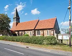 The original parish church of St Lawrence, located 600 yards (550 m) west of the present building,[3] was destroyed by fire. The current church was built in the centre of the village c. 1882–84 re-using some materials from the old church.[4][5]
