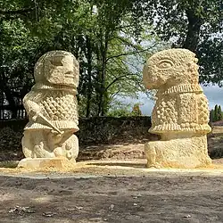 For his figurative stone sculptures Rinck uses traditional tools and techniques of direct carving.[3] He works with sandstone, limestone, marble and diabase. He finds his sources of inspiration in various epochs in particular the French Romanesque period as well as popular culture such as video games and comics.[4][5] Rinck's stone figures build a community of characters, animals, monsters and hybrid creatures endowed with symbols and cultural attributes. He uses examples from history, myths, religion and folklore as reference material[6] and places them in a contemporary context. He often deals with the issues of collective unconscious. The art theorist Bazon Brock states, Rinck adopts the figurative forms of expression of culturally collective fantasies remaining his independent language.[7] One of the key elements of his language is the humorous expression whose lightness stands in contrast to the materiality of the stone.[8] The humor has a liberating effect and helps the viewer to experience the unconscious. The cross-cultural and trans-historical communication qualities allow Rinck's sculptures to achieve universalizing ends, claims curator Daniel S. Palmer.[9] In 2019, Stefan Rinck was featured in the Thames & Hudson publication 100 Sculptors of Tomorrow. The documentary Heart of Stone by Sonja Baeger which pictures the production of Rinck's three monumental-in-size sculptures was premiered in 2021 in Berlin.