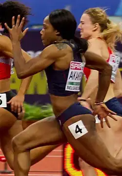 Stella Akakpo (born 28 February 1994 in Villepinte) is a French athlete specialising in the sprinting events.[1] She won the silver medal in the 4 × 100 metres relay at the 2014 European Championships. In addition, she represented her country at the 2013 World Championships.