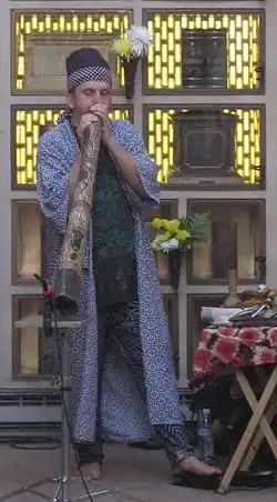 With the band Trance Mission, he joined the ranks of Jon Hassell, Steve Roach, and Robert Rich in exploring primal, techno-tribal music. Trance Mission was co-formed in San Francisco in 1992 by Stephen Kent (Didjeridu/Percussion), Beth Custer (Clarinets/Trumpet), John Loose (Multi-Ethnic Drums/Samples), and Kenneth Newby (Asian Winds/Digital Atmospheres), making up the quartet which produced 3 globally acclaimed CDs on the City of Tribes label over as many years in the mid-nineties.[1] After several European tours and many live appearances on the West Coast of the US, Loose and Newby moved on to other projects while Custer and Kent continued as Trance Mission, with Eda Maxym (also of Beasts of Paradise) joining on vocals and Canadian Peter Valsamis on Drums/Samples. This version of Trance Mission produced a live CD, "A Day out of Time", in 1999. Another version of Trance Mission performed at the Starwood Festival in 2006, featuring Stephen Kent, Peter Valsamis, Geoffrey Gordon, Eda Maxym and cellist Rufus Cappadocia.[2] (Kent had performed as a soloist at Starwood the previous year, opening for Brazilian percussionist Airto Moreira.[3])