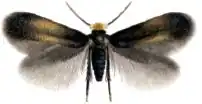 The wingspan is 4.2-5.2 mm. Adults are on wing from May to June and again in August in two generations.