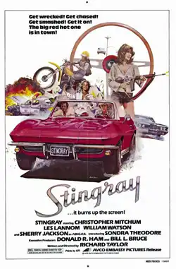 Stingray is a 1978 action comedy film written and directed by Richard Taylor and starring Christopher Mitchum, Les Lannom, William Watson and Sherry Jackson.[2] The plot concerns two buddies who buy a Corvette Stingray from a used car lot, and must fend off the criminals who stashed their loot inside. Along with Corvette Summer, it was one of two films centered around the Stingray to be released in June 1978, and was the subject of a feud with MGM over the use of the title. For some ancillary markets, it was re-titled Abigail: Wanted.
