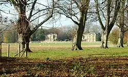 The surviving portions of the house built by Robert Crane in the late 1620s, consist of two pavilions and remains of a curving colonnade, form the centrepiece of the park, with an attractive terraced 17th-century garden with views across the parkland to the south. The pavilions represent some of the earliest Palladian structures built in England and, despite some remodelling in the 18th century and modern conversion for residential use of the eastern pavilion, they are of great historic and architectural significance. The associated house was destroyed by fire in the late 19th century, although details of its design have survived in drawings from the 18th century. It was almost immediately replaced with a large Neo-Jacobean building, which, in turn was largely demolished in the late 1940s following its use by the army during the Second World War.