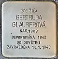 GERTRUDA GLAUBEROVÁ BORN 1909 DEPORTED 1942 TO THERESIENSTADT MURDERED 16 January 1943 |