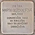 MARTA GLÜCKAUFOVÁ BORN 1889 DEPORTED 1942 TO THERESIENSTADT 1943 TO AUSCHWITZ MURDERED |