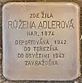 RŮŽENA ADLEROVÁ BORN 1910 DEPORTED 1942 TO THERESIENSTADT TO AUSCHWITZ 1943 MURDERED |