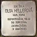 OLGA HELLEROVÁ BORN 1914 DEPORTED 1942 TO THERESIENSTADT MURDERED IN AUSCHWITZ |