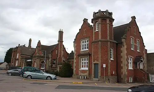 Nicklaus Pevsner described it as "an elaborate piece of Elizabethan architecture by Frederick J Barnes, 1849. Red and yellow brick, symmetrical, with shaped gables and angle towers."[22]