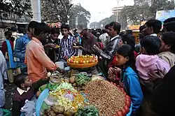 Street food of Kolkata is the food sold by hawkers and street vendors from portable market stalls in the streets of Kolkata, India. It is one of the major characteristics of the city, which makes Kolkata the "City of Joy". Kolkata's street foods include Indian street food as well as Chinese, Mughlai, British, and even European foods.[1]