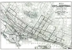 Prior to 1959, Montreal, Quebec, Canada had an extensive streetcar system. The streetcar network had its beginnings with the horsecar era of the Montreal City Passenger Railway in 1861. The initial line was along Rue Notre Dame (Notre Dame St) from Rue du Havre (Harbor St) to Rue McGill (McGill St).