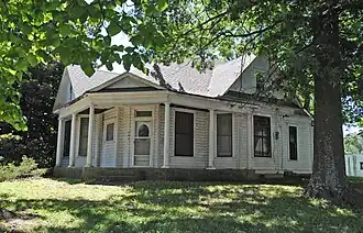 The Stroud House is a historic house at SE F Street and East Central Avenue in Bentonville, Arkansas. It is a 1+1⁄2-story wood-frame structure, with asymmetrical massing and decorative shinglework typical of the Queen Anne style, and a shed-roof front porch supported by Colonial Revival columns. It is a high-quality local example of this transitional style of architecture, built in 1903 by Daniel Boone Laine and Delila Laine. The property also includes remnants of a 1925 gas station.[2]