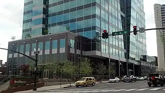 The SunTrust Plaza is a 13-story building located next to the Ryman Auditorium in Nashville, Tennessee. The building was completed in 2007 and features a Panera Bread restaurant and a fitness center.