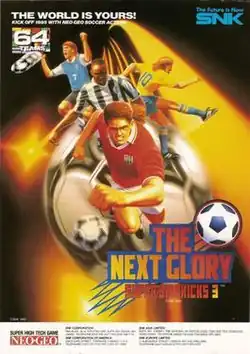 Super Sidekicks 3: The Next Glory[a] is a 1995 soccer arcade video game developed and published by SNK. It is the third installment in the Super Sidekicks series, succeeding Super Sidekicks 2: The World Championship (1994). Featuring an arcade-style approach to soccer like its predecessors, the game allows players to choose any of the available game modes to compete with AI-controlled rivals or other human players with their preferred team. Though first launched for the MVS hardware, the title was ported for Neo Geo AES and Neo Geo CD, in addition of being re-released through compilations and download services for various consoles. It proved popular among players and garnered positive reception from critics, but most reviewers noted that it felt more an update than a true successor to Super Sidekicks 2. It was followed by The Ultimate 11: SNK Football Championship in 1996.