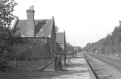 The station closed to passengers in 1965.[6] Goods facilities had closed earlier on 7 December 1964 but the goods shed was taken over for use beyond this date by the adjacent Post Office parcels depot.[7] The line remains open for freight trains and occasionally steam specials and diverted passenger workings.