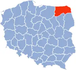 Suwałki Voivodeship (Polish: województwo suwalskie) was an administrative division and local government in Poland from 1975 to 1998. In 1999 the Voidvodeship was divided in half and reassigned to two other Voivodeships – the eastern half to Podlaskie Voivodeship and the western half to Warmian-Masurian Voivodeship.