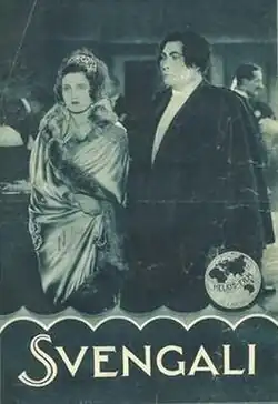 Svengali is a 1927 German silent drama film directed by Gennaro Righelli and starring Paul Wegener, Anita Dorris and André Mattoni.[1] It was produced and written by Max Glass, an adaptation of the 1894 George du Maurier novel Trilby. This is one of the adaptations of the novel that shifts the focus of the story more to Svengali, since at this time anti-Semitism was on the rise in Germany, and Svengali was portrayed as an evil Jew in the film.[2]