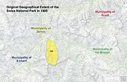 1909 | 25.2 km2 | Original area leased by the Schweizerischer Bund für Naturschutz from the municipality of Zernez. |