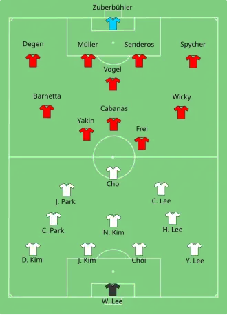 5. ^ a b "Tactical Line-up – Group H – Spain-Switzerland" (PDF). FIFA.com. Fédération Internationale de Football Association. 16 June 2010. Archived from the original (PDF) on July 22, 2011. Retrieved 16 June 2010.