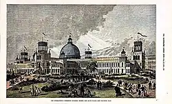 The Sydney International Exhibition opened in the autumn of 1879, but it wasn't really universal and therefore not officially recognised by the Bureau of International Expositions. Melbourne decided to start their exhibition shortly after the one in Sydney, so the participants could transport their exhibits during the winter of 1880.[4] After the exhibitions many of the exhibits were selected to be at display in the Technological, Industrial and Sanitary Museum (now the Powerhouse Museum). The Garden Palace itself was used by the government until a fire destroyed the building on 22 September 1882.[5]
