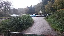 A camping coach was positioned here by the Western Region from 1953 to 1958; an early form of self-catering accommodation which used converted redundant railway carriages for occupation by holidaymakers who could arrive and depart by train.[4] Today the station site has long been levelled but the foundations of the station building and platforms remain and the area now forms a car parking area for a local hotel inn.