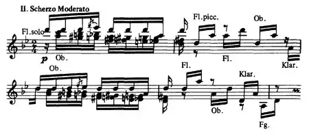 3 flutes (3rd doubling piccolo), 2 oboes, 3 clarinets in B-flat (3rd doubling bass clarinet), 2 bassoons, 4 horns, 3 trumpets, 3 trombones, tuba, timpani, triangle, cymbals, bass drum, bells, harp, strings