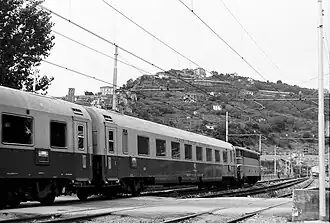 ![]() FS type TEE carriages in the composition of the Trans Europ Express train Mediolanum