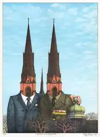 He also made the book cover paintings of De heliga geograferna (1973) and Guddöttrarna (1975), the first two novels about Sunne by the Swedish writer Göran Tunström.