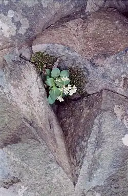 Early Saxifrage sprouting in a trap rock ledge, Talcott Mountain