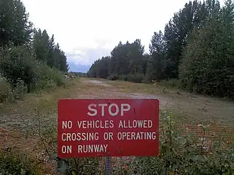 The Talkeetna Airstrip is a historic runway in Talkeetna, Alaska. It is a rectangular area of land, covered by grass and gravel, extending southward along D Street from First Street toward the Susitna River. It is about 1,800 feet (550 m) long and 30 feet (9.1 m) wide, with its northern stretch now lined with private residences and its southern stretch surrounded by public woodlands. The airstrip was created in 1940 as the result of a presidential executive order issued by President Franklin Delano Roosevelt in 1937, which set aside federal land near Talkeetna for aviation-related purposes. It played a major role in the economic development of the community, as air transport was the most reliable method of bringing supplies and travelers into the area.[2]