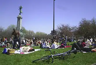 The Tam-Tams is the informal name of a weekly free festival around the George-Étienne Cartier Monument in Mount Royal Park in Montreal, Quebec, Canada. Its name imitates the sound of drums and refers to the drum circles that form the focal points of the gathering.[1]
