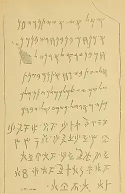 - ^ a b Letter from Professor Wright, 15 December, 1886; in the Proceedings of the Society of Biblical Archaeology: "Among the objects from Cyprus exhibited during the past summer at the Colonial Exhibition were two bilingual inscriptions, Phoenician and Cypriote, the property of Colonel F. Warren, R.A., who discovered them during his excavations at Frangissa... The longer and better preserved of these has been translated and published by the well known archaeologist M. D. Pierides, though without the Phoenician text... The smaller of Colonel Warren's two bilinguals is not nearly so well preserved, especially as regards the upper or Phoenician portion. I have sent a squeeze of it to Professor Euting, who will no doubt succeed in deciphering it with Dr. Deecke's help."