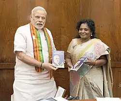 Soundararajan presenting books to Prime Minister Narendra Modi
