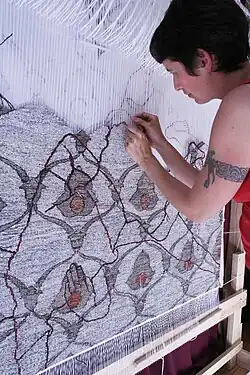 Tamlin Blake (born 1974) is a South African mixed media artist living and working in Riebeeck West. The major themes of Blake's work revolve around cross-cultural South African symbols of wealth and status and, more recently, what constitutes and underpins each individuals sense of belonging.[1] Her sculptural pieces often transcend boundaries between illustration, craft, and art, using weaving, beading, and drawing, amongst other media.[2]