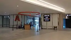 In 2018, work was complete to remodel the main terminal. As part of the renovation, the shuttle stations were rebuilt and moved outward to give the center of the building more space on Level 3. The rebuilt stations include glass platform screen doors in contrast with the metal doors of the earlier stations. The Airside D shuttle station, which had been simply blocked off with a shoe shine stand since its closure, was also removed at the same time and was replaced with a food court.[13][14] The rest of the Airside D guideway was demolished in 2019.[15]