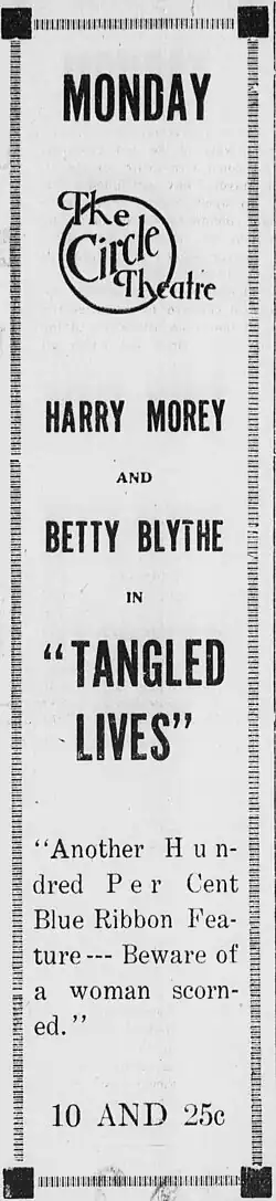 Tangled Lives is a 1918 American silent drama film directed by Paul Scardon. It stars Harry T. Morey, Betty Blythe and Jean Paige.[1]