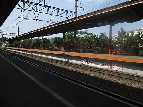 Tanjung Barat Station (TNT) is a class II railway station located in Tanjung Barat, Jagakarsa, South Jakarta. The station, which is located at an altitude of +44 m, is included in the Jakarta Operational Area I and only serves the KRL Commuterline route.