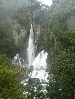 After rain, part of the flow passes over the top of the cliff as a 65 m (213 ft) tall companion fall.