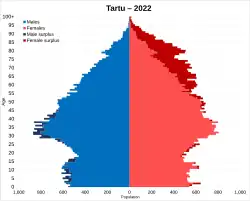 Tartu city population pyramid in 2022