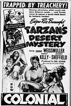 Tarzan's Desert Mystery is a 1943 American Tarzan film directed by Wilhelm Thiele and starring Johnny Weissmuller and Nancy Kelly.[1]